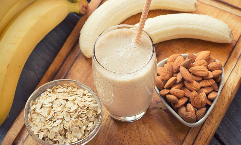 Dinh dưỡng: Hạnh nhân cung cấp chất béo tốt (50g/100g), chuối giàu kali và carbohydrate (90kcal/quả), hỗ trợ tăng cân và phát triển cơ.