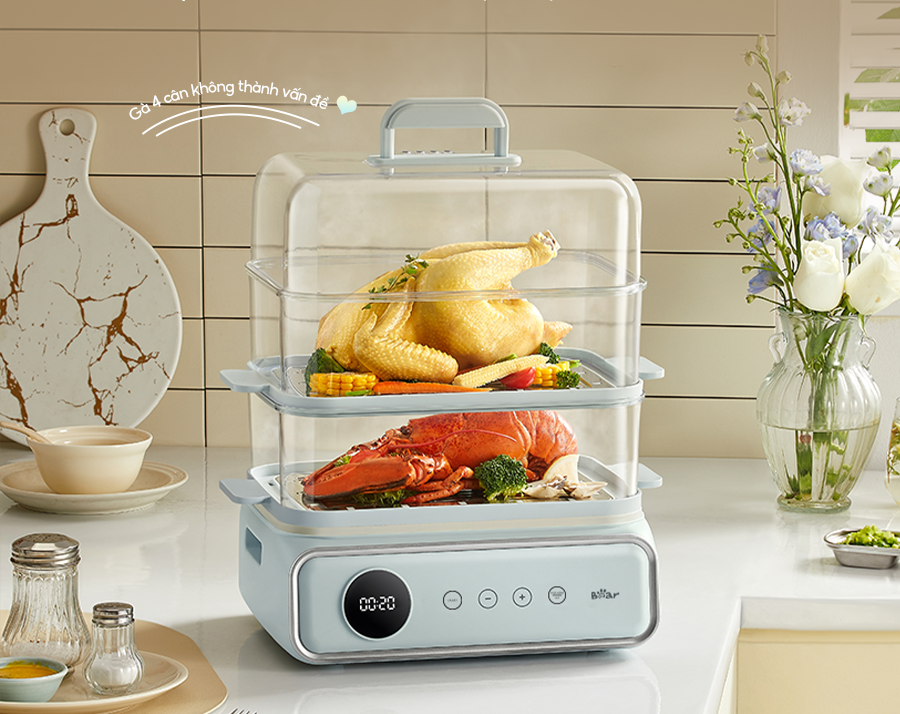 Hấp gà nguyên con là một cách chế biến đơn giản nhưng đầy tinh tế, giúp giữ trọn vị ngọt tự nhiên, độ mềm của thịt và mang lại món ăn bổ dưỡng cho gia đình. Nồi hấp Bear, với thiết kế đa tầng, công suất mạnh mẽ và tính năng tiện lợi, là công cụ lý tưởng để thực hiện món gà hấp thơm ngon mà không cần lò nướng hay nồi áp suất phức tạp.