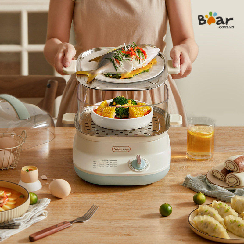 Bear DZG-C60W9 được thiết kế để phù hợp với mọi đối tượng người dùng, từ người trẻ bận rộn đến người lớn tuổi ít kinh nghiệm với đồ điện tử. Chỉ cần đổ nước, xếp thực phẩm vào khay, xoay núm hẹn giờ, bạn đã có thể yên tâm chờ đợi món ăn hoàn thành mà không cần giám sát liên tục. Tính linh hoạt của nồi còn thể hiện ở khả năng điều chỉnh số tầng sử dụng: nếu chỉ cần nấu ít, bạn có thể bỏ tầng trên ra, giúp tiết kiệm điện năng và nước, rất thực tế cho gia đình nhỏ hoặc cá nhân sống một mình.