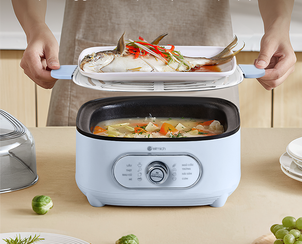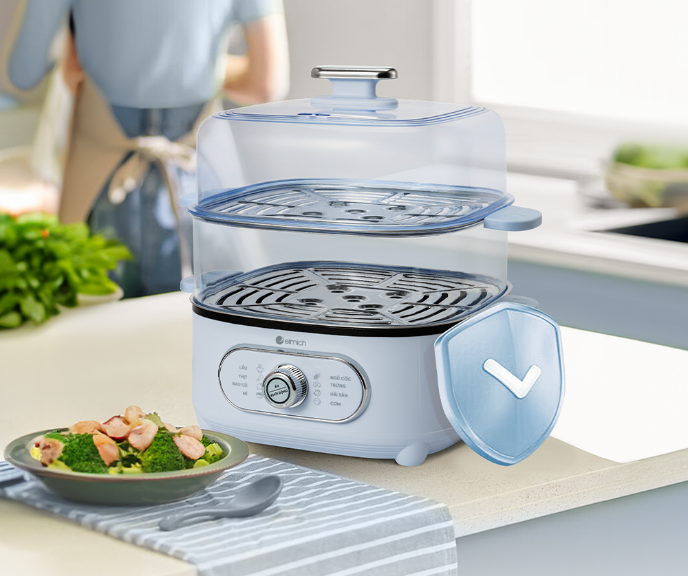 Elmich, ngược lại, tập trung vào hiệu suất hấp cơ bản với sự ổn định và đáng tin cậy thay vì chạy theo tính đa năng. Công suất của Elmich thường nằm trong khoảng 800W-1000W, đủ mạnh để tạo hơi nước ổn định và chín đều thực phẩm mà không cần thời gian chờ quá lâu. Giống như Bear, Elmich cũng được trang bị hẹn giờ và tính năng tự ngắt khi hết nước, đảm bảo an toàn trong quá trình sử dụng và giảm nguy cơ cháy nổ nếu người dùng quên đổ nước. Tuy nhiên, Elmich không tích hợp các tính năng phụ như chống trào hay khe châm nước, cũng không có ngăn nấu lẩu như một số dòng Bear, khiến nó tập trung hoàn toàn vào chức năng hấp truyền thống.