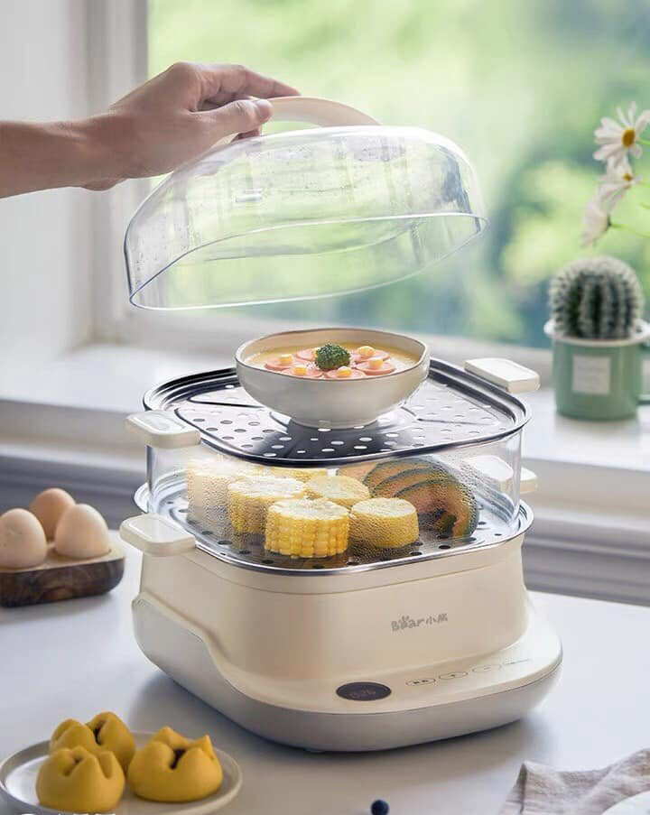 Điều khiển của Bear thường là nút vặn cơ học hoặc màn hình cảm ứng, được thiết kế thân thiện, dễ thao tác ngay cả với người mới bắt đầu. Điểm nổi bật nhất là tính đa nhiệm: ngoài hấp rau củ, cá, thịt, Bear còn có thể nấu lẩu, hầm súp, hoặc giữ ấm món ăn, giúp tiết kiệm không gian và giảm nhu cầu sử dụng thêm thiết bị khác trong bếp.