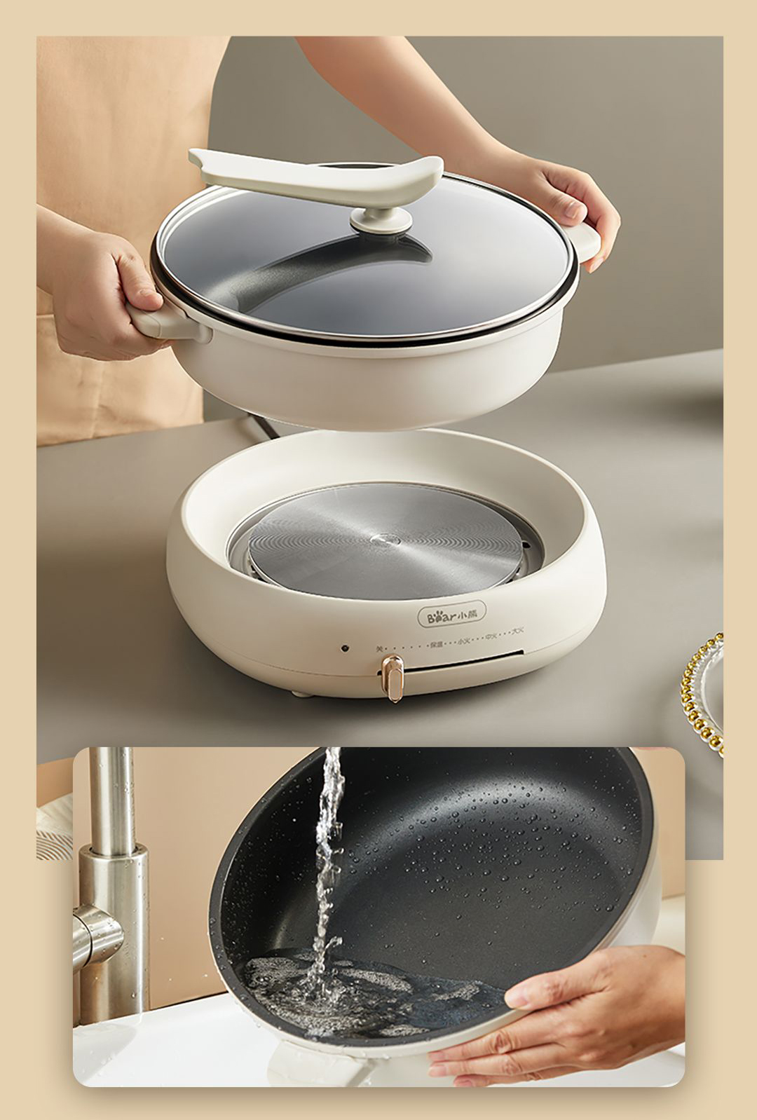 - Chảo nướng/khay hấp: Tháo chảo nướng (Bear DKL-D12A1) hoặc khay hấp để rửa riêng.