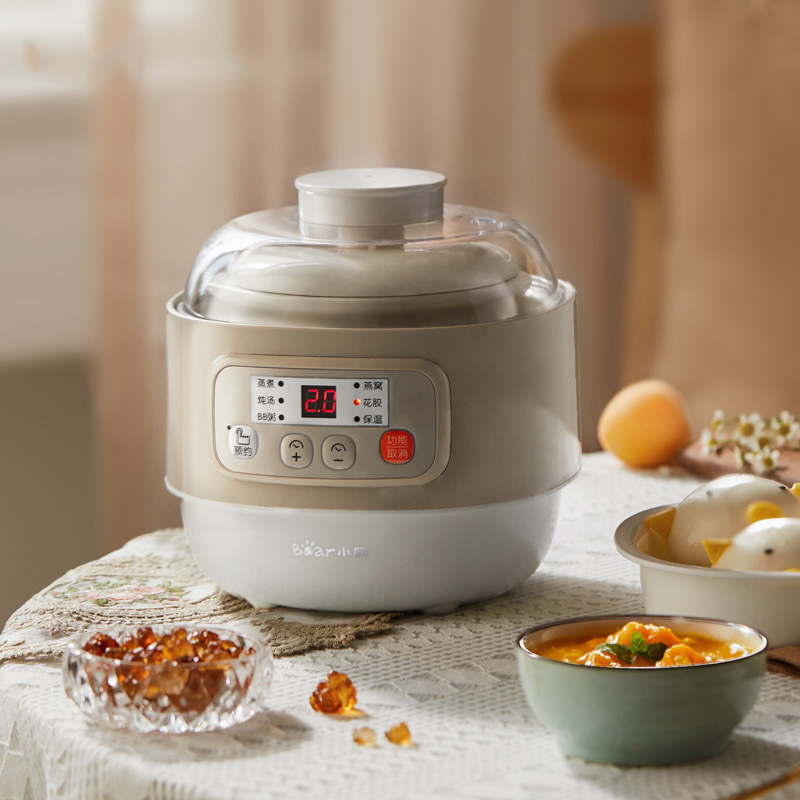 - Dùng thố phụ (nếu có): Với mẫu Bear 2.5L (DDZ-C25R6), tận dụng 4 thố nhỏ 0.4L để hầm thêm súp hoặc cháo cùng lúc.
