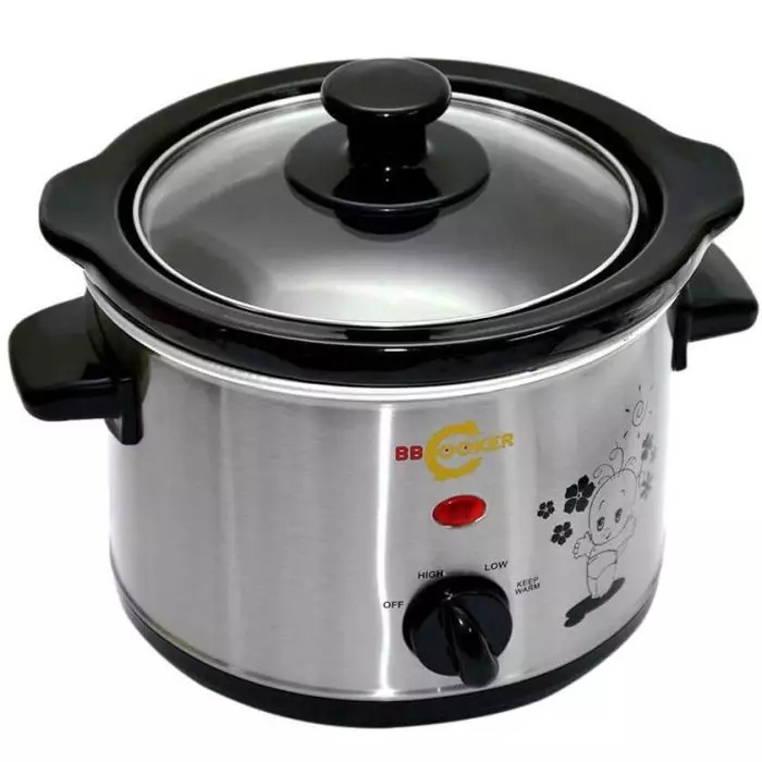 BBCooker BS-15 (1.5L) đến từ Hàn Quốc, giá 1.200.000 - 1.500.000 VNĐ, dung tích 1.5L, công suất 250 - 300W, là lựa chọn đa năng với 5 - 7 chế độ, hẹn giờ 8 - 10 tiếng. Thiết kế hiện đại, có màn hình LED, vỏ thép không gỉ và lõi sứ chống dính, nồi này nấu nhanh hơn Bear/Panasonic, phù hợp cả hầm xương và kho thịt. Tuy nhiên thương hiệu BBCooker giá cao và ít trung tâm bảo hành tại Việt Nam khiến nó kém phổ biến hơn.