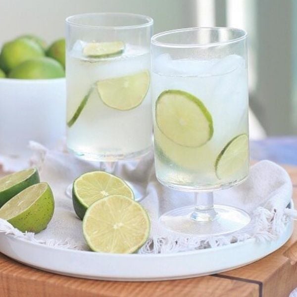 Nguyên liệu: 2 quả chanh tươi (khoảng 50ml nước cốt), 200ml nước lọc, 2 thìa cà phê đường hoặc mật ong, đá lạnh.