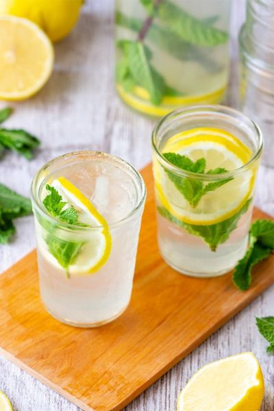 Nguyên liệu: 2 quả chanh (50ml nước cốt), 250ml nước lọc, 1 thìa đường, 5 - 7 lá bạc hà tươi, đá lạnh.