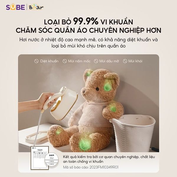 Bàn ủi hơi nước Bear IR-4H15H không chỉ giúp làm phẳng quần áo, mà còn tích hợp khả năng khử khuẩn mạnh mẽ, loại bỏ đến 99.9% vi khuẩn nhờ hơi nước có nhiệt độ cao. Đây là giải pháp hoàn hảo để giữ cho quần áo luôn sạch khuẩn, thơm mát và an toàn cho làn da.
