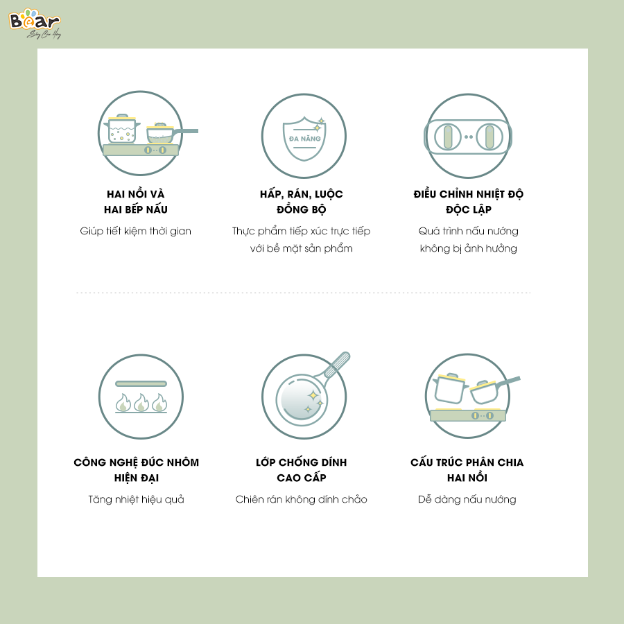 Đặc điểm nổi bật của bộ bếp đa năng kèm nồi chảo Bear SB-BD02N