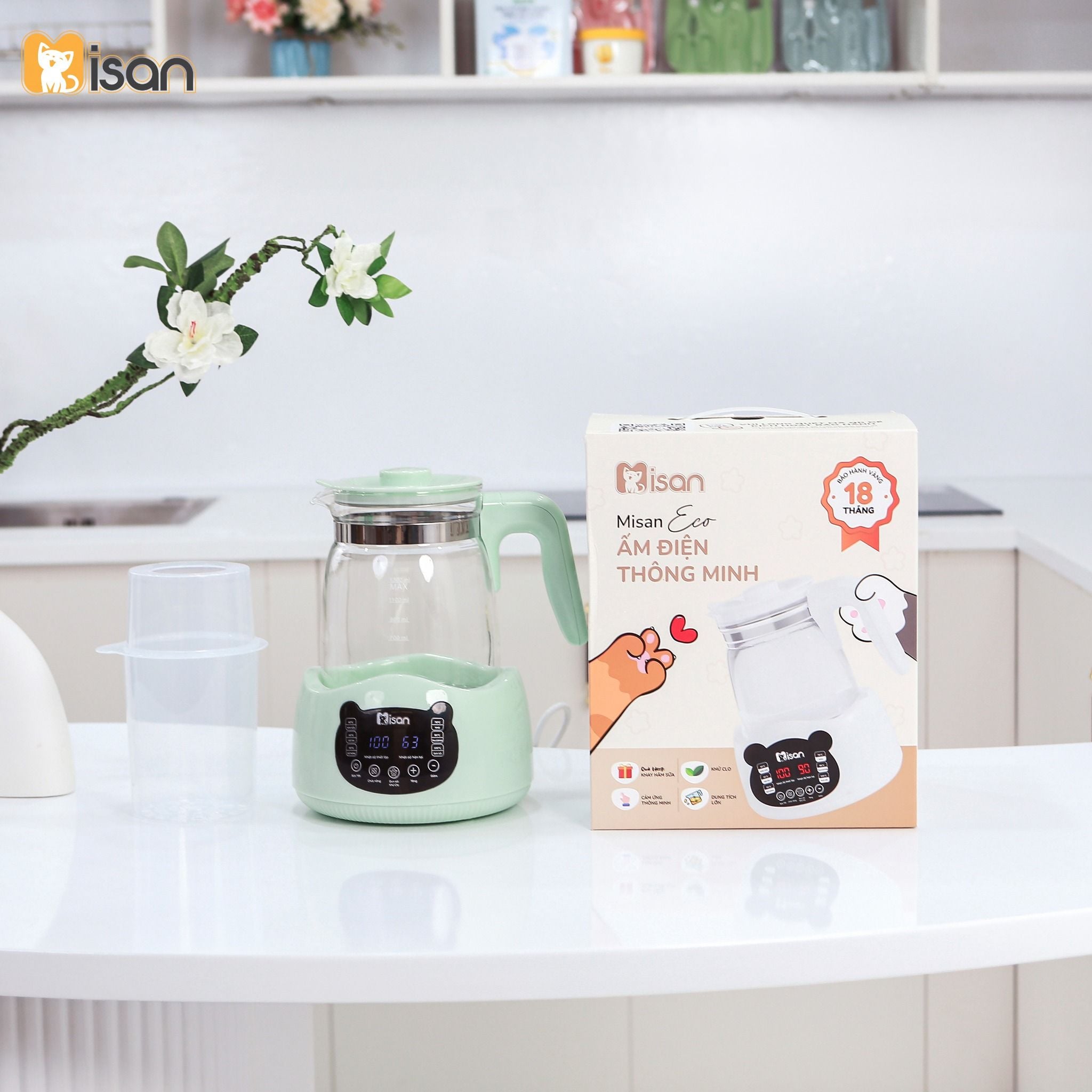 Nhờ tính năng này, nước sau khi đun trở nên tinh khiết hơn, không còn hóa chất dư thừa, đảm bảo an toàn tuyệt đối khi pha sữa, nấu cháo hoặc chế biến đồ ăn cho bé. Với Misan Eco, bạn có thể hoàn toàn yên tâm rằng nguồn nước sử dụng mỗi ngày luôn đạt chuẩn an toàn, giúp bé tránh các vấn đề tiêu hóa như đầy bụng, tiêu chảy, đau bụng do nước chưa được xử lý kỹ. Đây chính là giải pháp đảm bảo sức khỏe bé yêu ngay từ những năm tháng đầu đời.