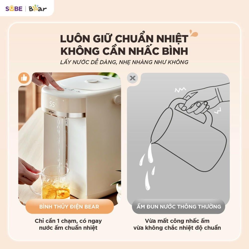 - Tối ưu điện năng và chi phí: Nhờ khả năng giữ nhiệt thông minh và cơ chế tự ngắt, Bear 5L tiết kiệm điện hơn so với các thiết bị đun nước truyền thống.