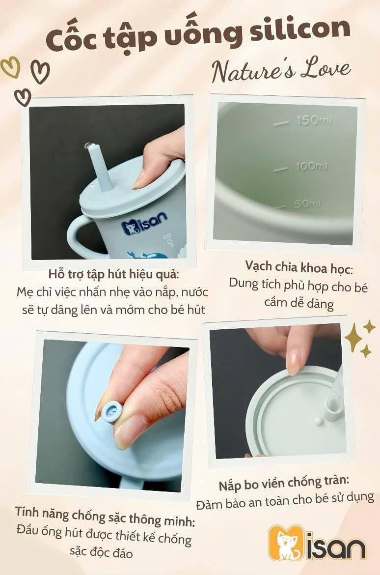 - Tên sản phẩm: Cốc tập uống Silicon Nature's Love Misan