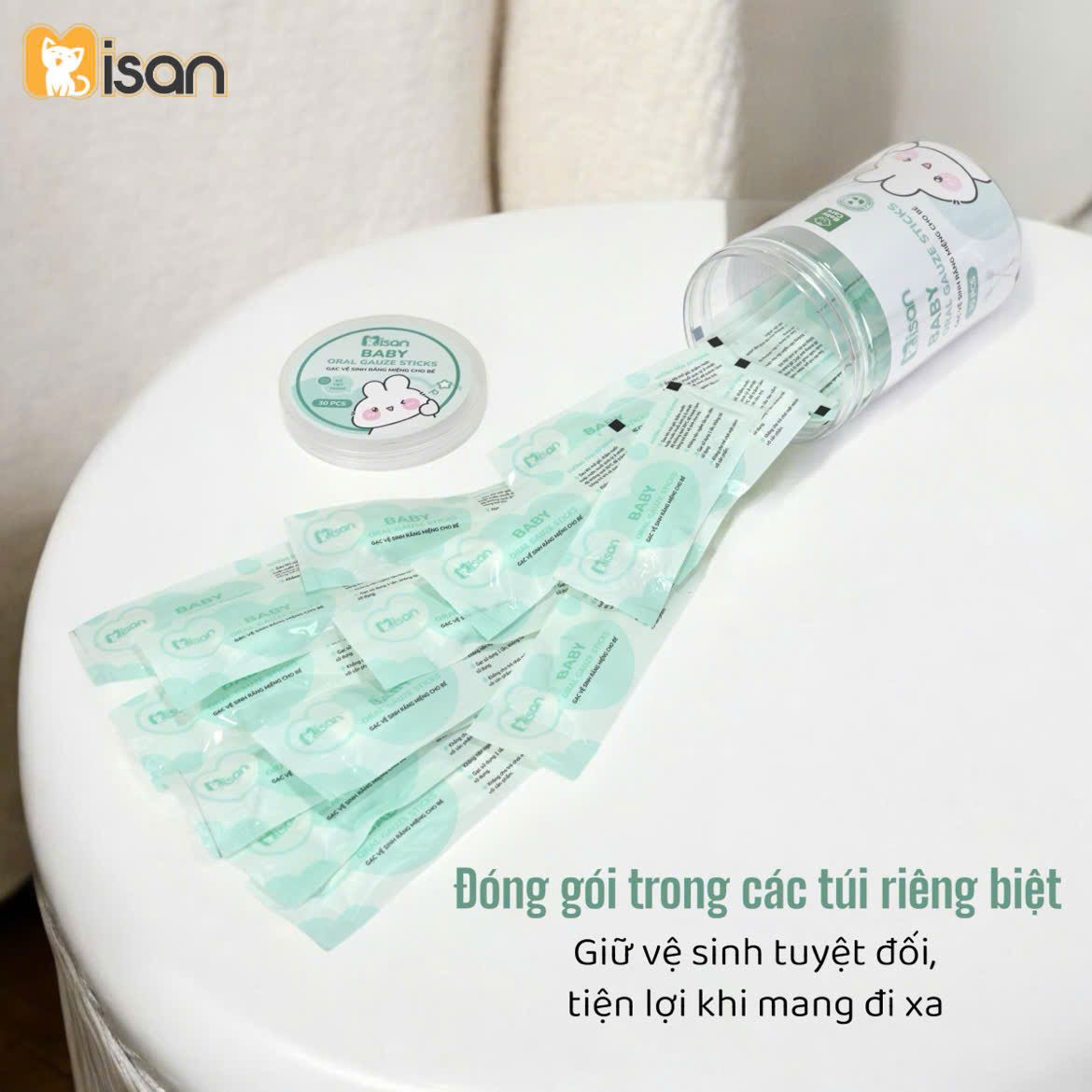 Mỗi que gạc được đóng gói riêng biệt trong bao bì kín, đảm bảo vệ sinh tuyệt đối và dễ dàng mang theo khi ra ngoài, đi du lịch hay đến nhà trẻ. Mẹ chỉ cần mở gói, làm ẩm gạc bằng nước ấm hoặc nước muối sinh lý là có thể sử dụng ngay, không cần chuẩn bị phức tạp, giúp tiết kiệm thời gian và công sức trong việc chăm sóc bé hàng ngày.