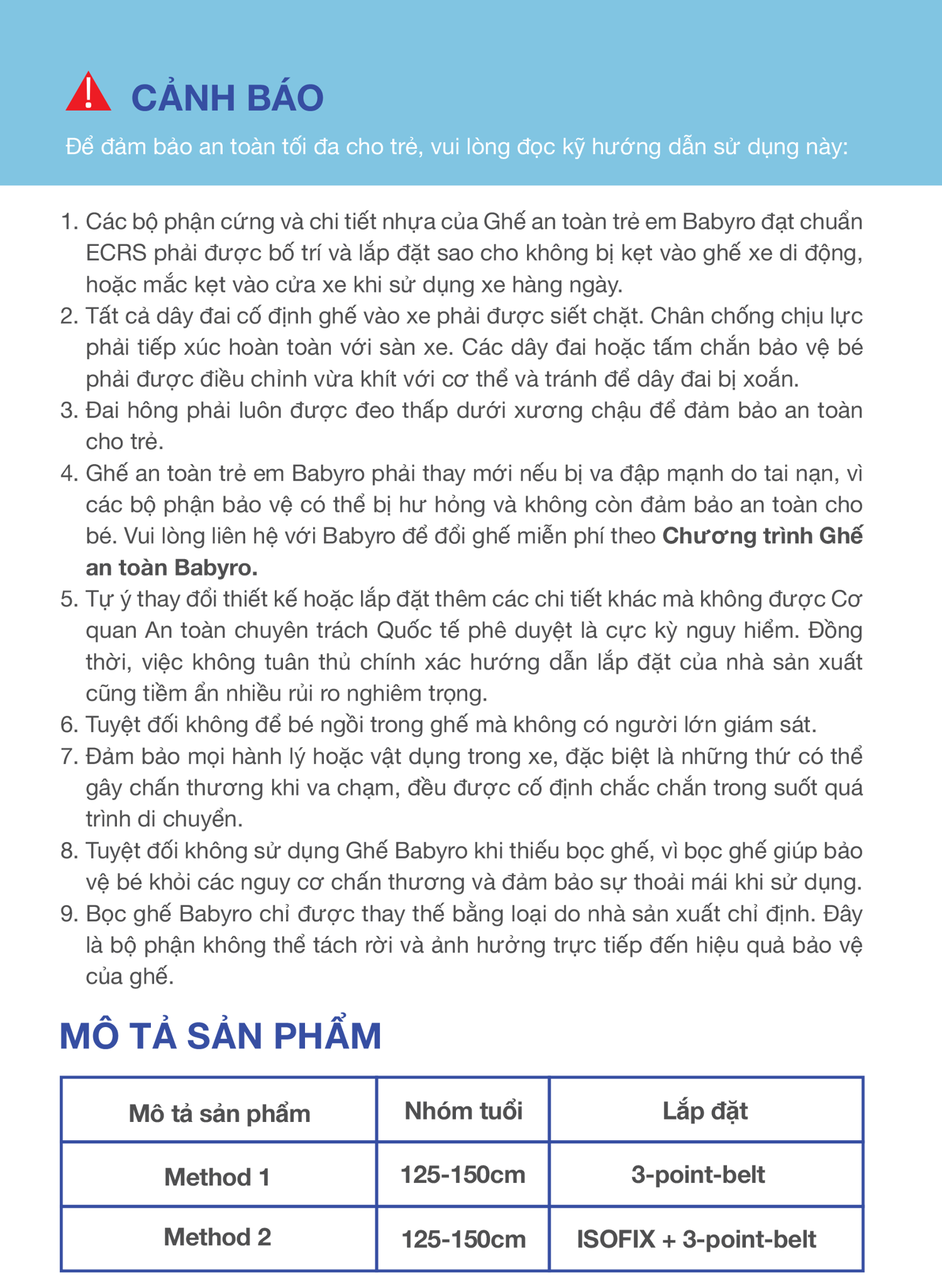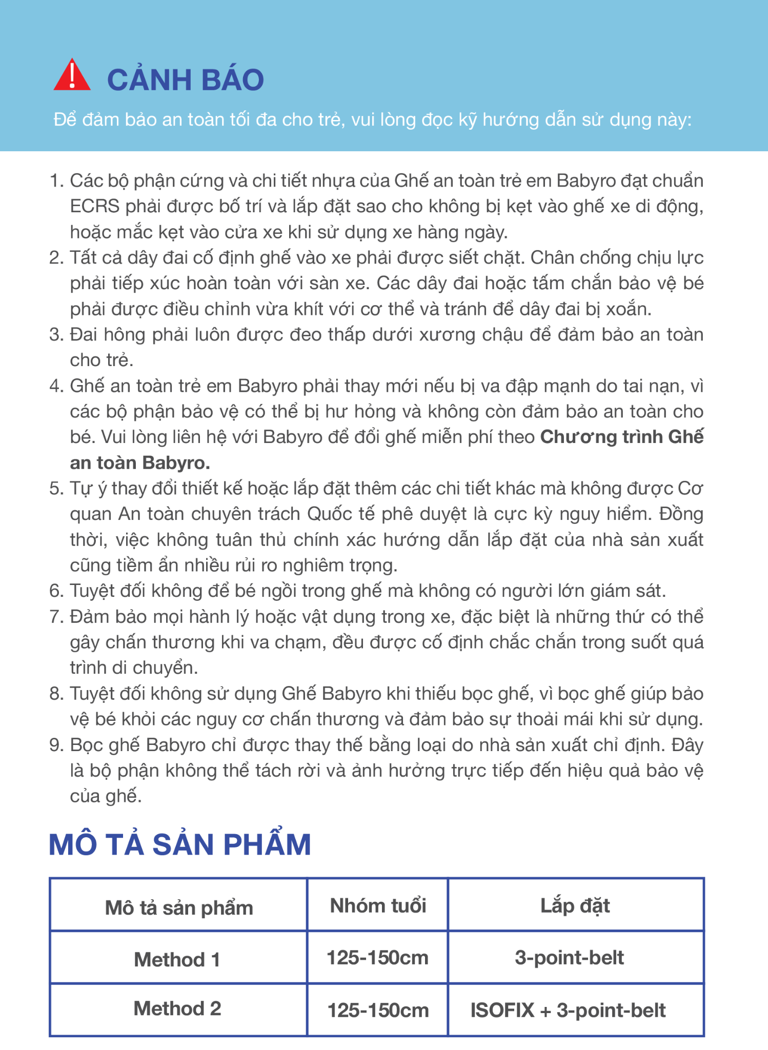 Thông số kỹ thuật BABYRO BOOSTER PLUS