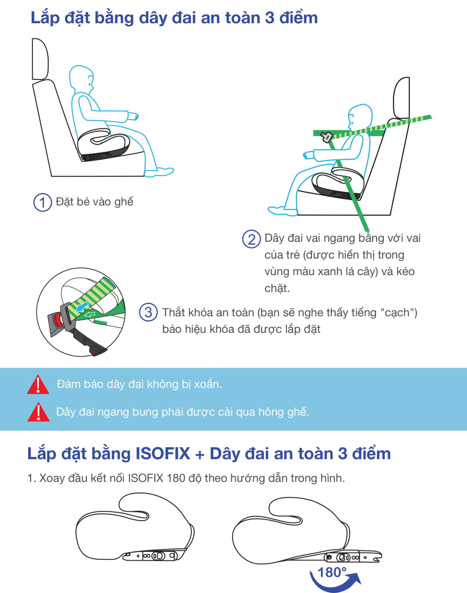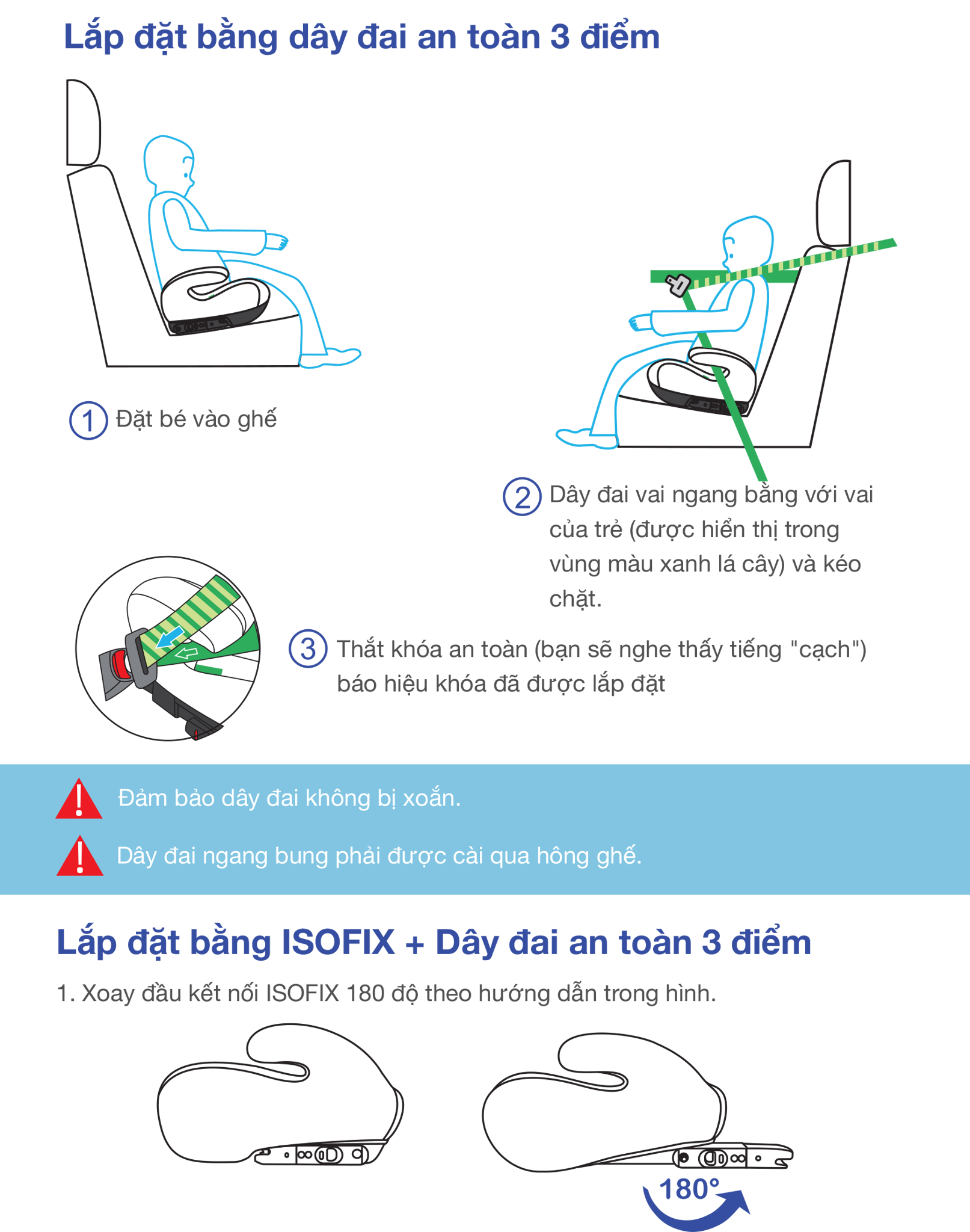 • Hoặc sử dụng đai an toàn 3 điểm của xe - tương thích 100% các mẫu ô tô.