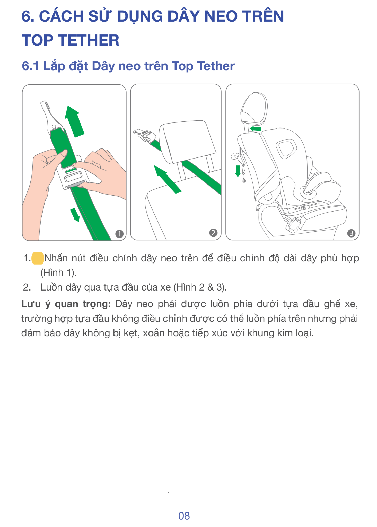 • Top Tether chặn lực xoắn & hạn chế gật đầu ki phanh.