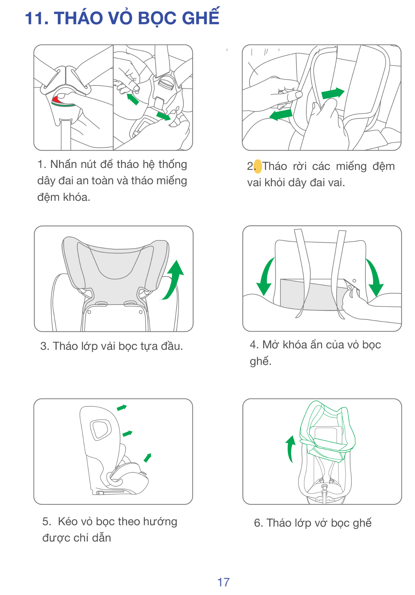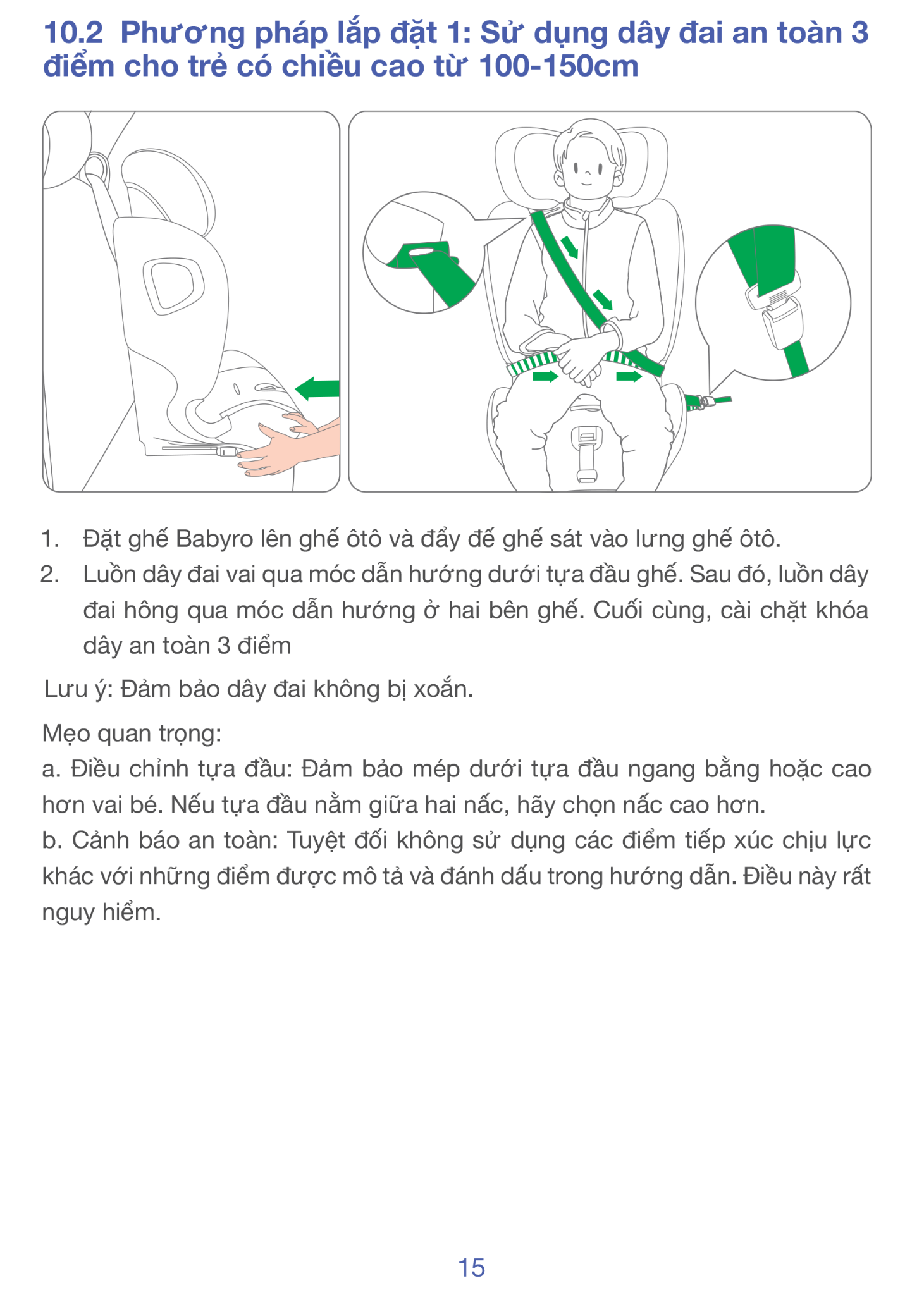 • Trẻ dùng đai xe, ghế tiếp tục nâng đỡ & bảo vệ hông + đầu.