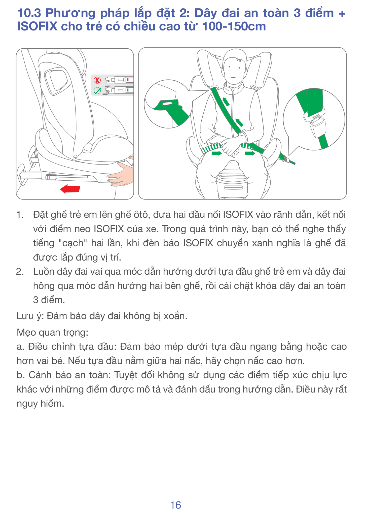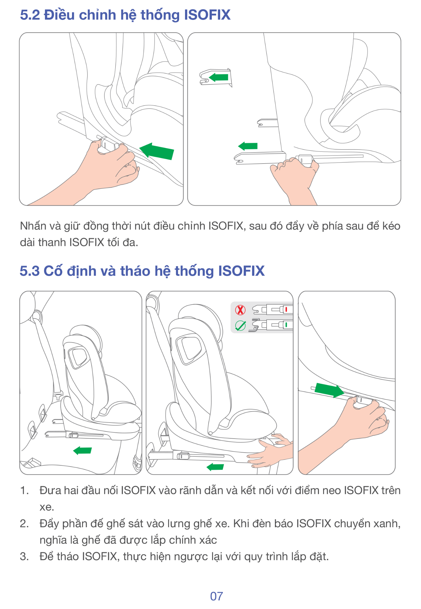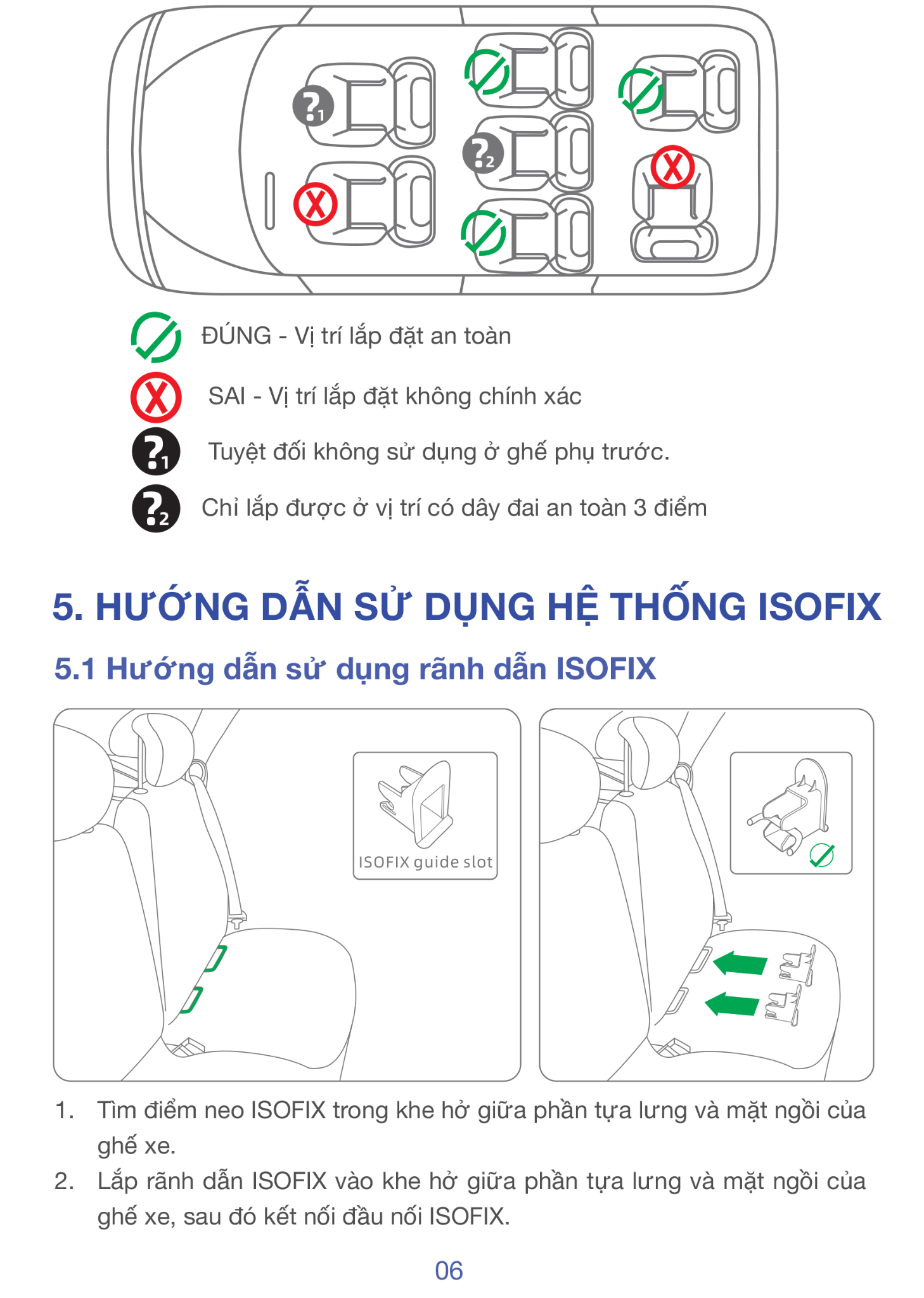 • ISOFIX cố định thân ghé xuống khung xe.