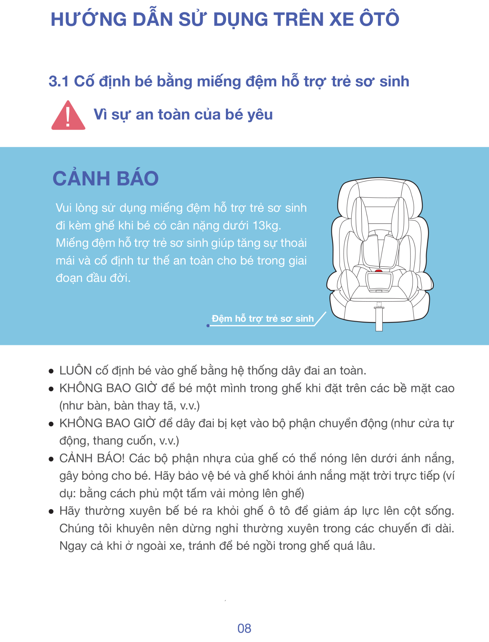 • Tựa lưng ngả linh hoạt theo ghế ô tô để bé ngủ thoải mái hơn trên xe.