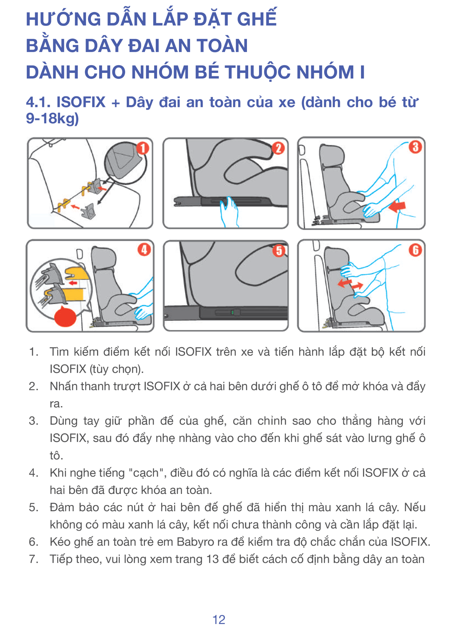 Sự kết hợp giữa ISOFIX 2 điểm và hệ thống đai ô tô 3 điểm giúp ghế cố định chắc chắn trong hầu hết các dòng xe. Cấu trúc này phù hợp cho cả xe gia đình lẫn xe dịch vụ - đúng tinh thần "lắp vào là yên tâm".