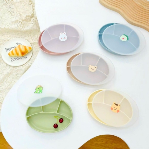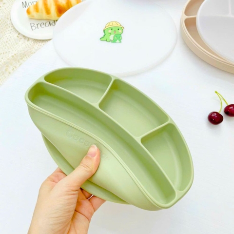 - Tên sản phẩm: Khay ăn dặm silicone Coco Bear có nắp - hình oval, 4 ngăn