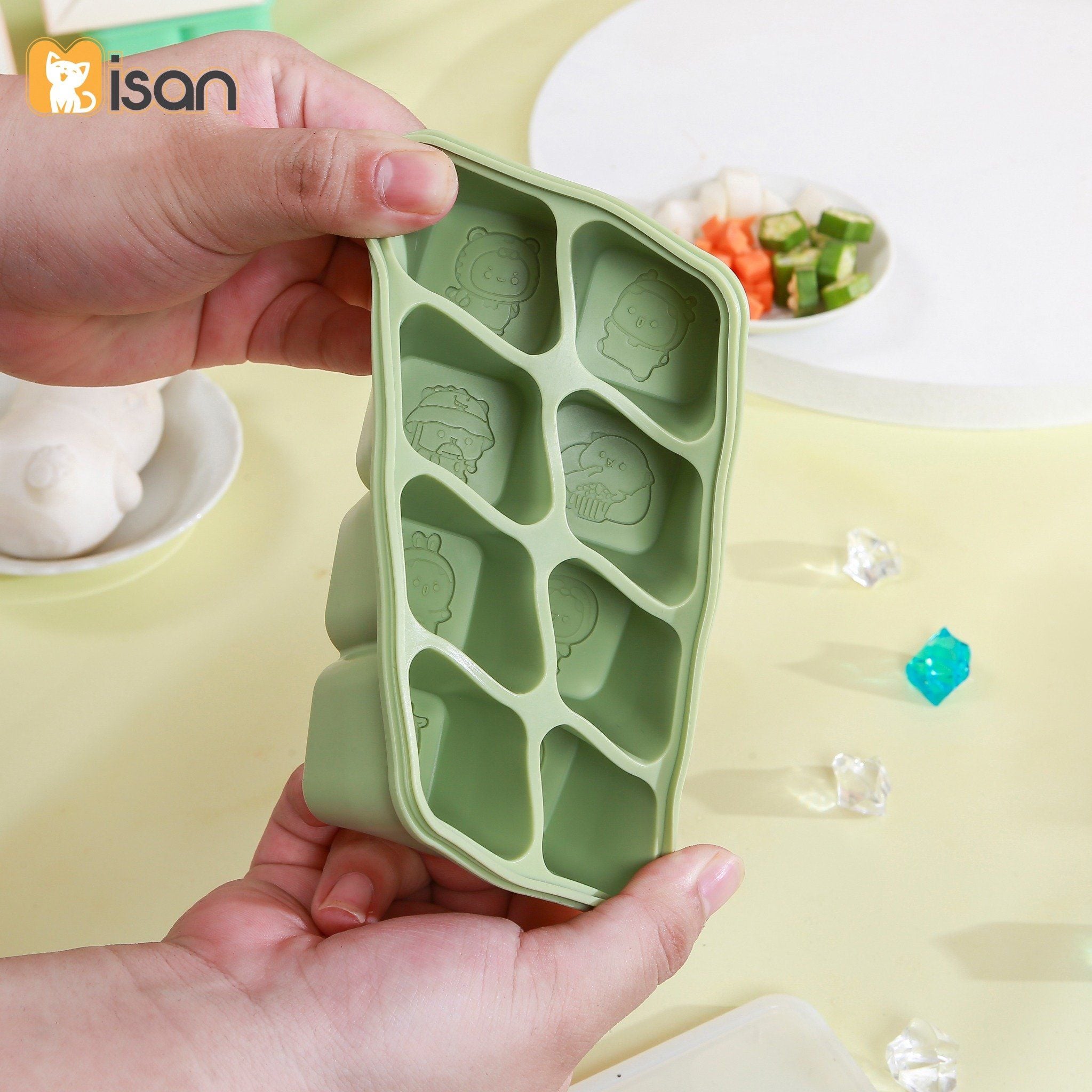 - Lấy thức ăn dễ dàng: Silicon mềm dẻo, không đông cứng giòn, chỉ cần ấn nhẹ là lấy được viên mà không nứt vỡ hay méo mó, không cần dùng thìa hoặc dao cạy.