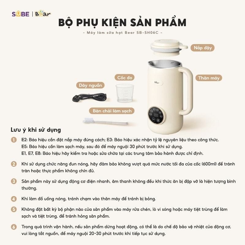 Lưu Ý Khi Sử Dụng Máy Làm Sữa Hạt Bear SB-SH06C