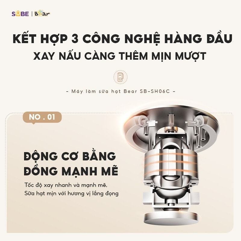 Máy Bear SB-SH06C được tích hợp hệ thống giảm tiếng ồn 5 lớp, kết hợp đệm chống rung và động cơ đồng nguyên chất giúp hạn chế tiếng ồn tối đa trong quá trình xay nấu. Bạn có thể yên tâm sử dụng máy vào sáng sớm hoặc đêm khuya mà không gây ảnh hưởng đến sinh hoạt của các thành viên khác trong gia đình.