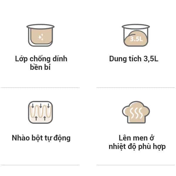 Thiết kế bảng điều khiển trực quan với 3 nút bấm đơn giản, cho phép người dùng tùy chỉnh các chế độ nhào và ủ bột theo ý muốn. Bạn không cần phải lo lắng về việc canh chừng thời gian, bởi máy đã tích hợp chế độ hẹn giờ tự động, giúp bạn vừa làm bánh vừa có thể thực hiện các công việc khác một cách thoải mái.