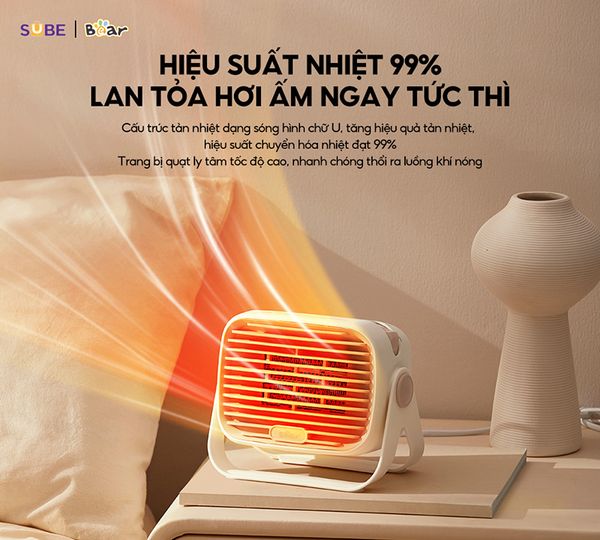 Nhờ khả năng điều chỉnh linh hoạt, máy sưởi không thổi trực tiếp vào người mà tỏa nhiệt dần dần, giúp giữ ấm cơ thể một cách tự nhiên mà không gây khô da hay khó chịu. Đây là một ưu điểm quan trọng, đặc biệt đối với trẻ nhỏ và người cao tuổi, những đối tượng nhạy cảm với sự thay đổi nhiệt độ đột ngột. Bên cạnh đó, phạm vi hoạt động rộng của luồng gió giúp máy làm ấm hiệu quả ngay cả ở không gian lớn, không tập trung nhiệt cục bộ như các dòng máy sưởi thông thường. Điều này khiến Bear DNQ-E04Q1 trở thành sự lựa chọn hoàn hảo cho các phòng ngủ, phòng khách hay phòng làm việc, đảm bảo bạn có một không gian ấm áp, thoải mái và dễ chịu suốt cả mùa đông.