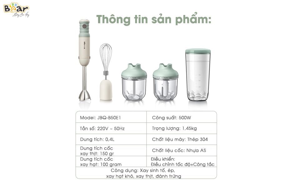 Thông Số Kỹ Thuật Máy Xay Cầm Tay Bear JBQ-B50E1