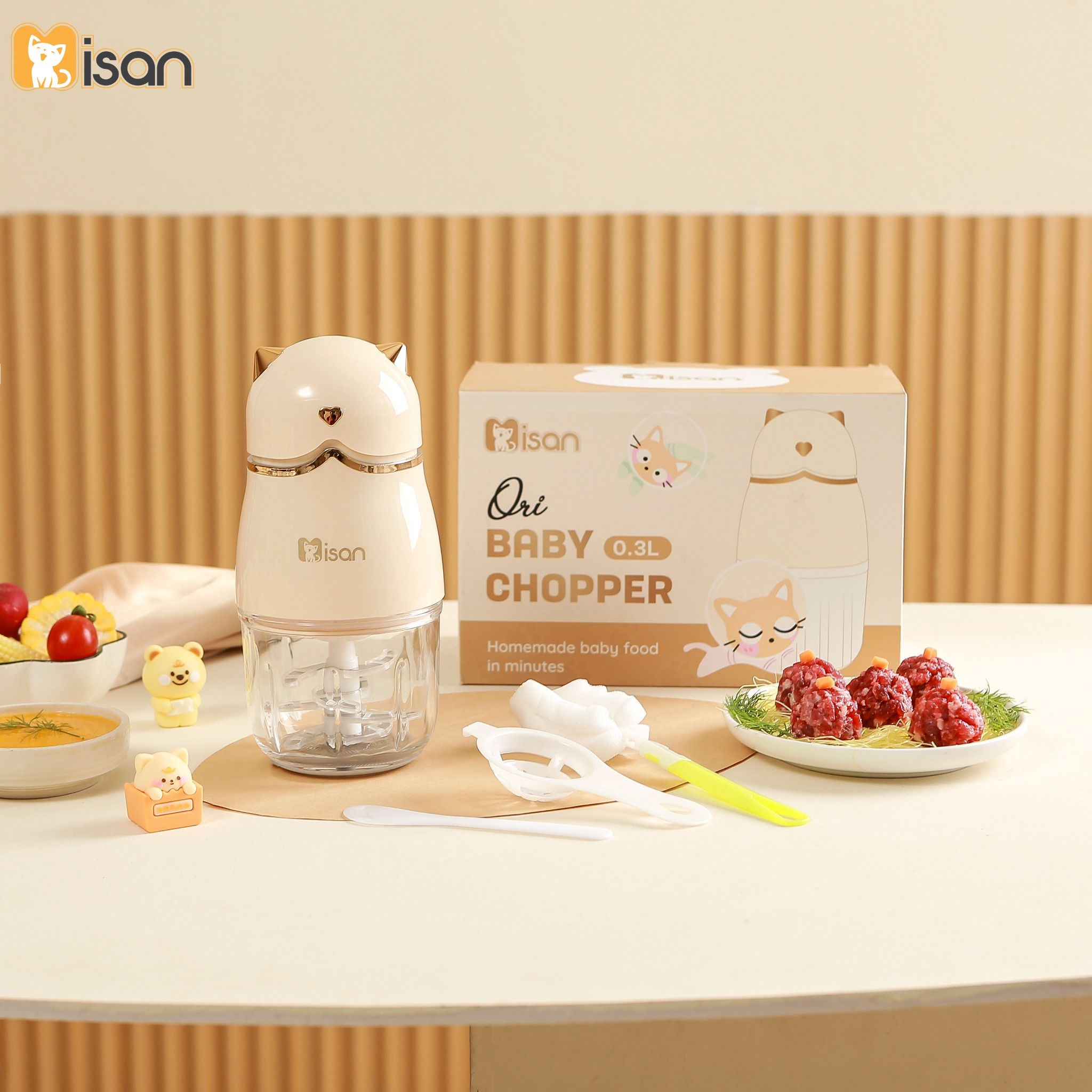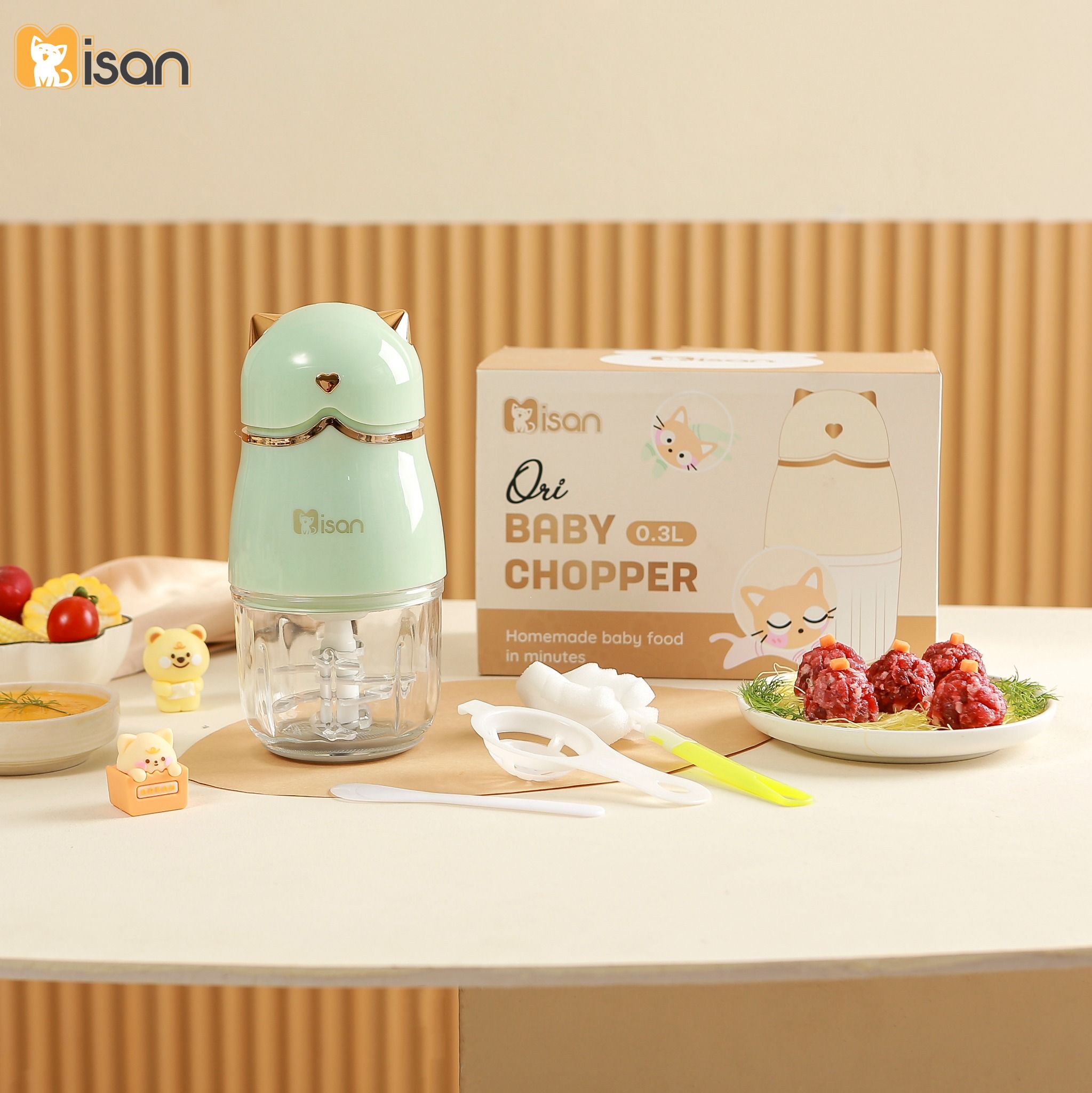 Dung tích 300ml vừa đủ, phù hợp cho bé và gia đình nhỏ: Dung tích cối xay 300ml là lựa chọn tối ưu để chuẩn bị khẩu phần ăn nhỏ cho bé hoặc xay một ly sinh tố nhanh gọn cho mẹ. Thiết kế dung tích vừa phải giúp tránh lãng phí thực phẩm, đồng thời tiết kiệm thời gian khi không cần chia nhỏ nguyên liệu để xay nhiều lần.