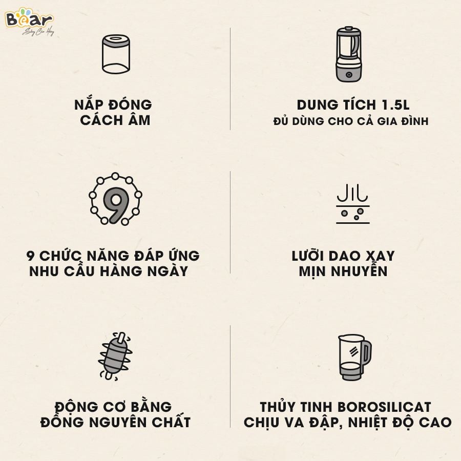 Với thiết kế đẹp mắt, chất liệu cao cấp và khả năng tùy chỉnh linh hoạt, Bear PBJ-B06S2 phù hợp cho mọi không gian bếp hiện đại - từ gia đình nhỏ đến người ăn chay, người tập gym hoặc mẹ bỉm muốn làm thực phẩm dinh dưỡng cho con. Đây không chỉ là máy xay sữa hạt thông thường mà là một thiết bị đa năng đáng đầu tư cho gian bếp tiện nghi và thông minh.