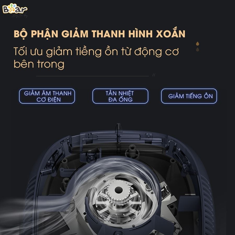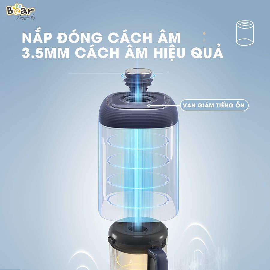 Máy xay nấu Bear PBJ-B06S2 nổi bật với hệ thống cách âm hiện đại, giúp giảm đáng kể tiếng ồn trong quá trình vận hành - chỉ khoảng 72dB, thấp hơn hầu hết các dòng máy xay thông thường. Nhờ đó, bạn có thể sử dụng máy vào buổi sáng sớm hoặc tối muộn mà không làm ảnh hưởng đến giấc ngủ của trẻ nhỏ, người lớn tuổi hay các thành viên khác trong gia đình.