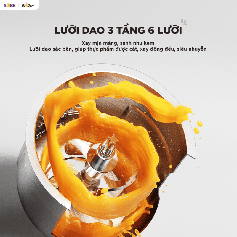 5. Lưỡi dao 3 tầng - 6 cánh xay nhuyễn đồng nhất