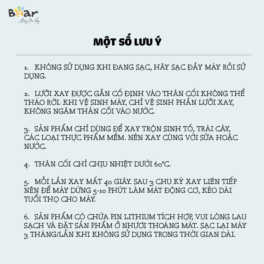 Lưu Ý Quan Trọng Khi Sử Dụng Máy Xay Sinh Tố Bear BL-B35V1