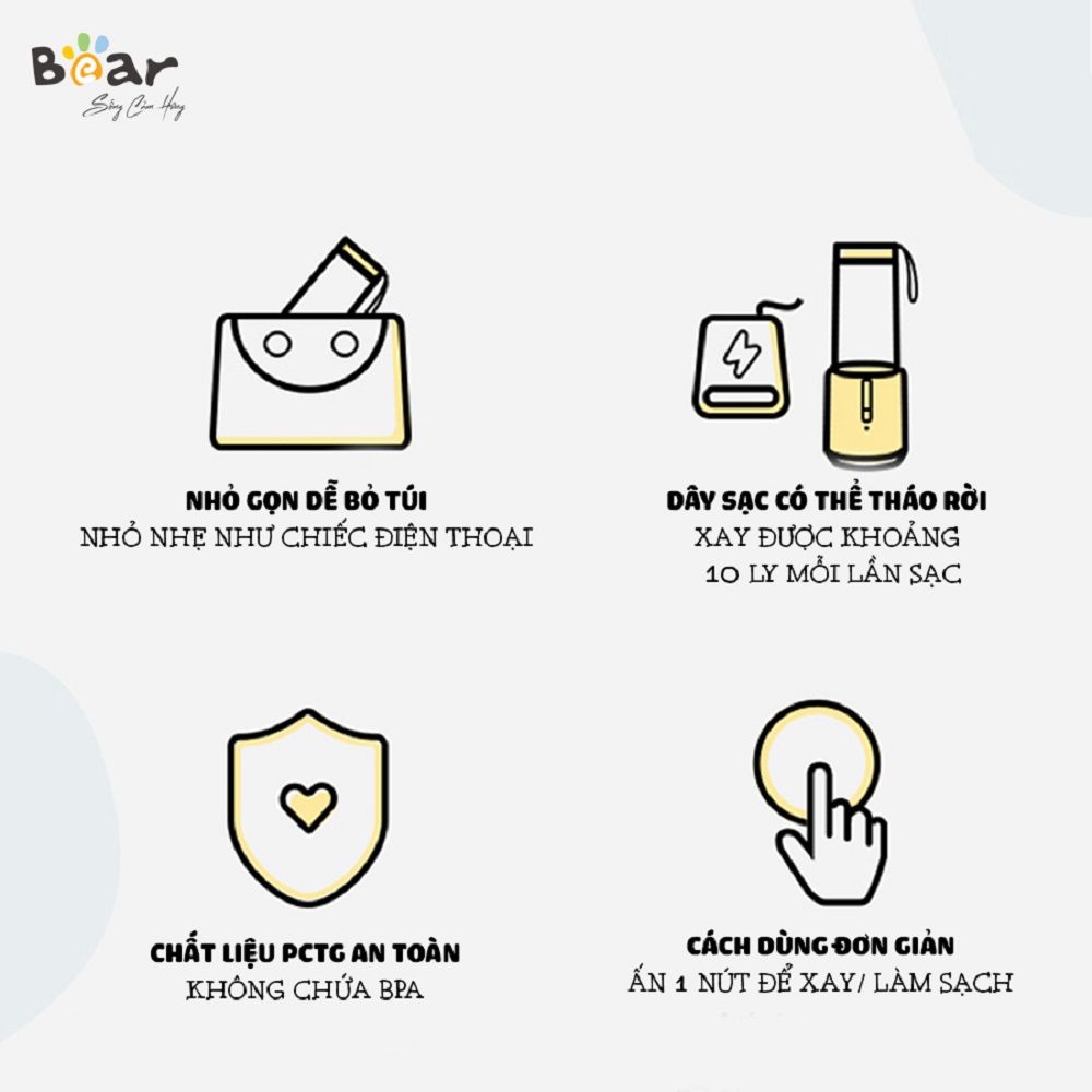 Máy xay sinh tố cầm tay Bear BL-B35V1 là lựa chọn lý tưởng cho những ai yêu thích sinh tố nhưng không muốn phụ thuộc vào máy xay truyền thống cồng kềnh. Với thiết kế hiện đại, nhỏ gọn và khả năng hoạt động không cần cắm điện trực tiếp, Bear BL-B35V1 cho phép bạn dễ dàng mang theo đến bất cứ đâu - từ văn phòng, phòng tập cho đến những chuyến dã ngoại.