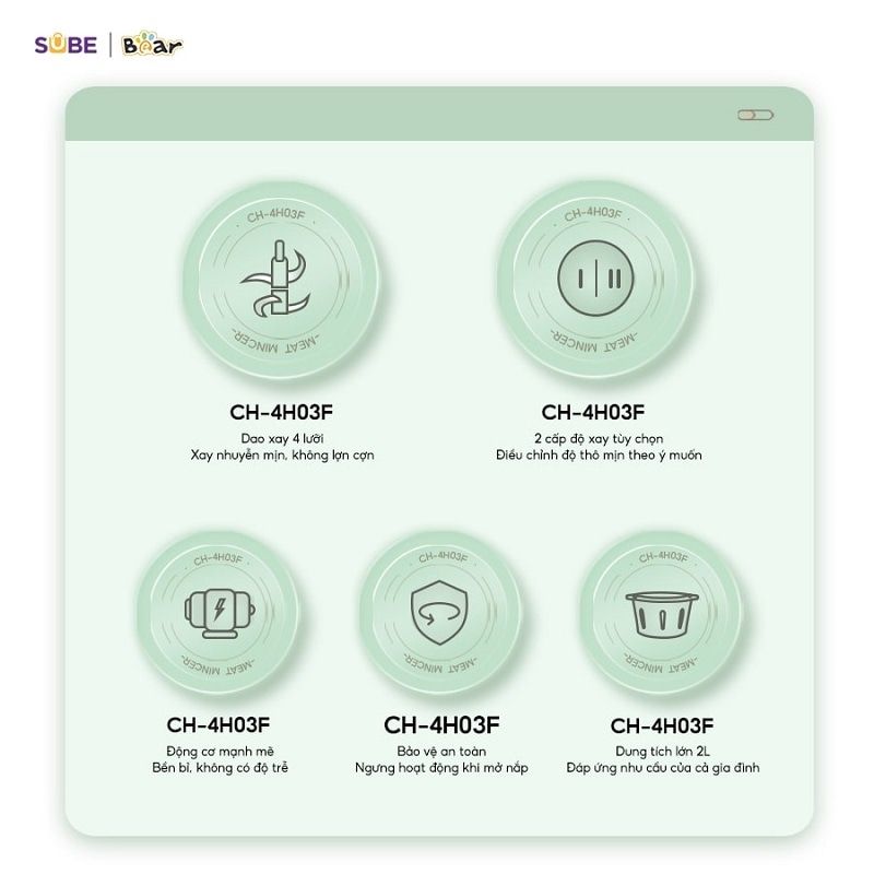 - Tên sản phẩm: Máy xay thịt Bear CH-4H03F