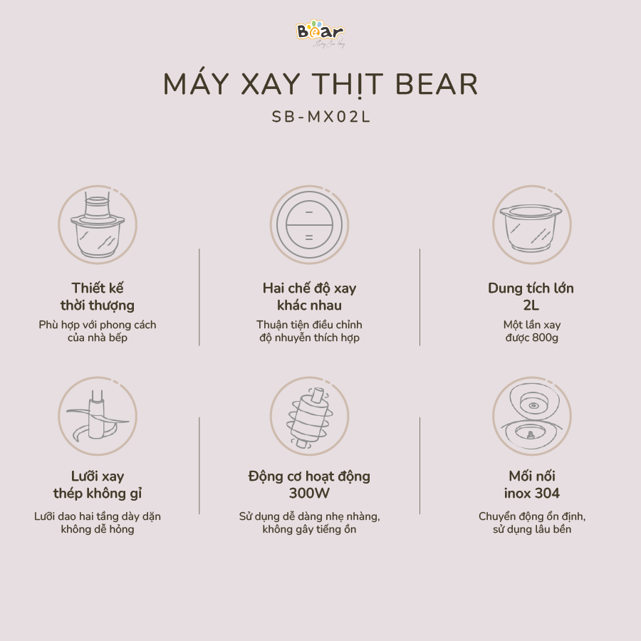 Những Điểm Nổi Bật Của Máy Xay Thịt Bear 2L SB-MA02L