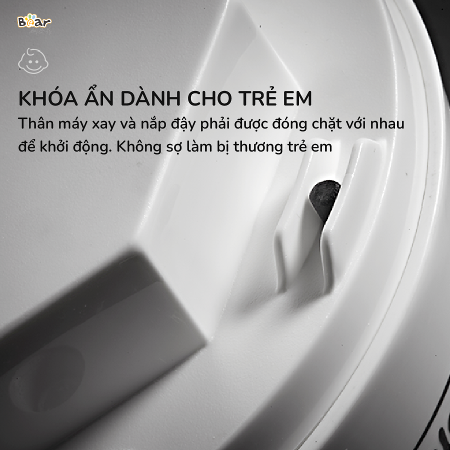 - Khóa an toàn: Máy chỉ hoạt động khi cốc xay và lưỡi dao được lắp đặt đúng khớp.