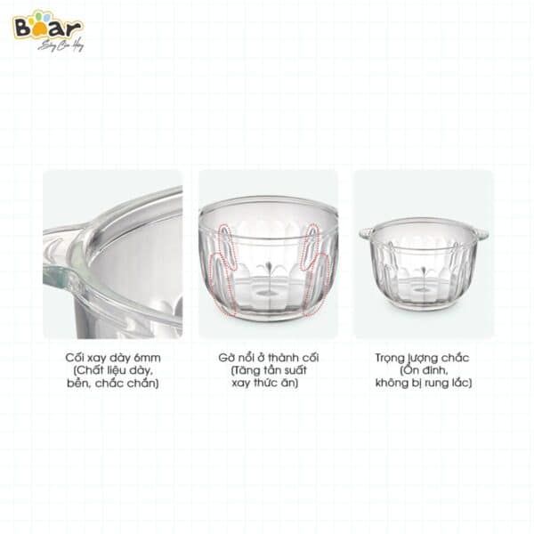 - Cối xay bằng thủy tinh borosilicate dày 6mm, chịu lực và chịu nhiệt tốt, không bám mùi, dễ vệ sinh.