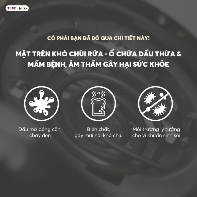 Tấm lọc cấu trúc tổ ong được lắp dưới thanh nhiệt trên, ngăn dầu mỡ bắn lên và bám cặn, giảm khói và mùi khó chịu. Thiết kế tháo rời thông minh cho phép vệ sinh dễ dàng chỉ với một thao tác đẩy nhẹ, đảm bảo nồi luôn sạch sẽ và sẵn sàng cho lần sử dụng tiếp theo.