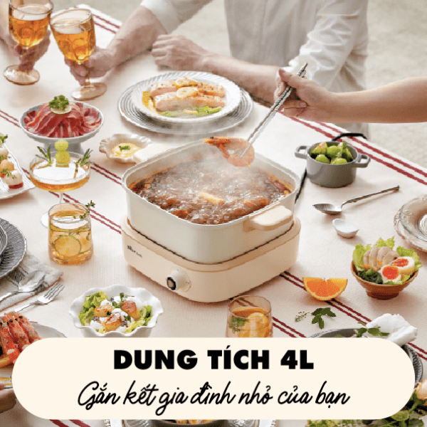 Với dung tích 4L, nồi lẩu điện Bear DHG-C40M1 dễ dàng phục vụ các bữa ăn gia đình hoặc những buổi tụ họp bạn bè. Không gian nồi rộng rãi, đủ để chế biến các món ăn đa dạng như lẩu, súp, nướng hoặc hầm.