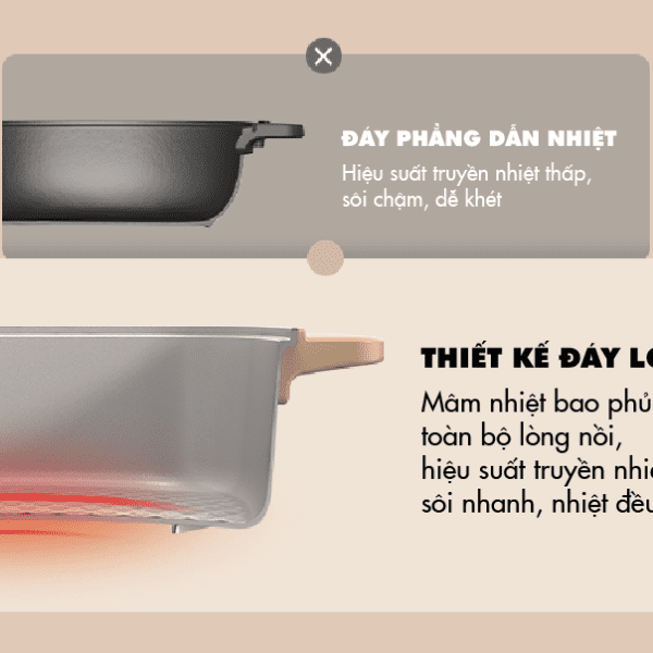 1. Thiết kế đáy lồi hiện đại - Tăng hiệu suất nấu nướng
