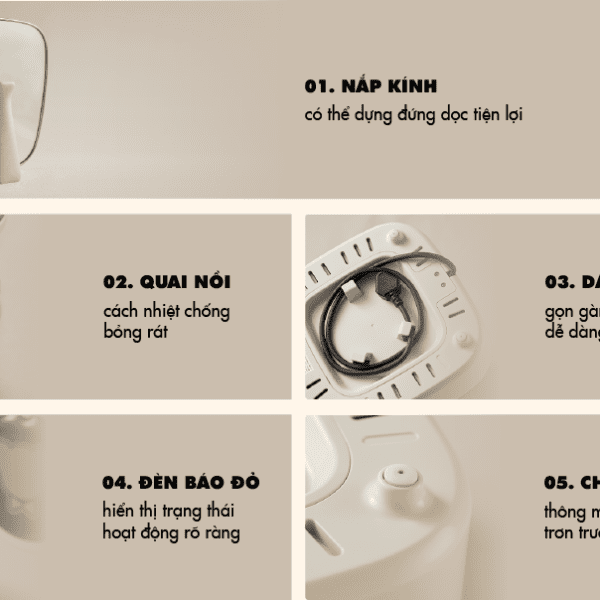 * Núm xoay điều chỉnh: Đơn giản nhưng hiệu quả, chỉ cần xoay để điều chỉnh từ giữ ấm đến nhiệt độ sôi cao.