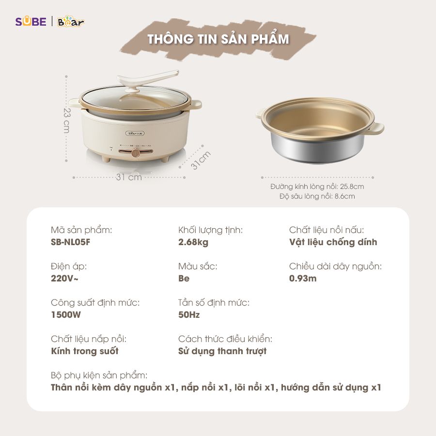 - Tên sản phẩm: Nồi lẩu điện Bear SB-NL05F