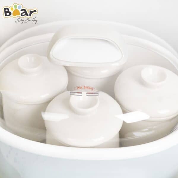 - 4 thố sứ nhỏ 0.4L: Giúp bạn chưng yến, hầm thảo dược, hấp trứng hoặc chế biến các món ăn dặm riêng biệt cho bé mà không bị lẫn mùi. Nhờ hệ thống hơi nước tuần hoàn, nhiệt lượng phân bổ đồng đều, đảm bảo món ăn chín mềm và thơm ngon.
