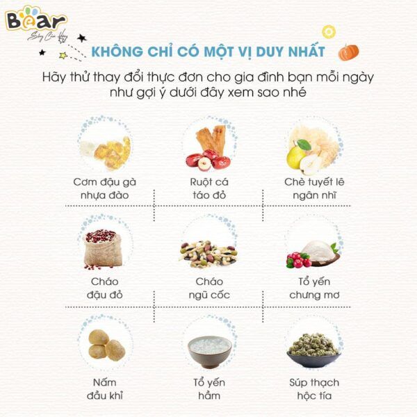 Nồi nấu chậm Bear 2.5L SUBE003 được thiết kế để đáp ứng nhu cầu nấu nướng của các gia đình Việt, đặc biệt là những nhà có trẻ nhỏ hoặc người lớn tuổi cần chế độ ăn mềm, dễ tiêu hóa.