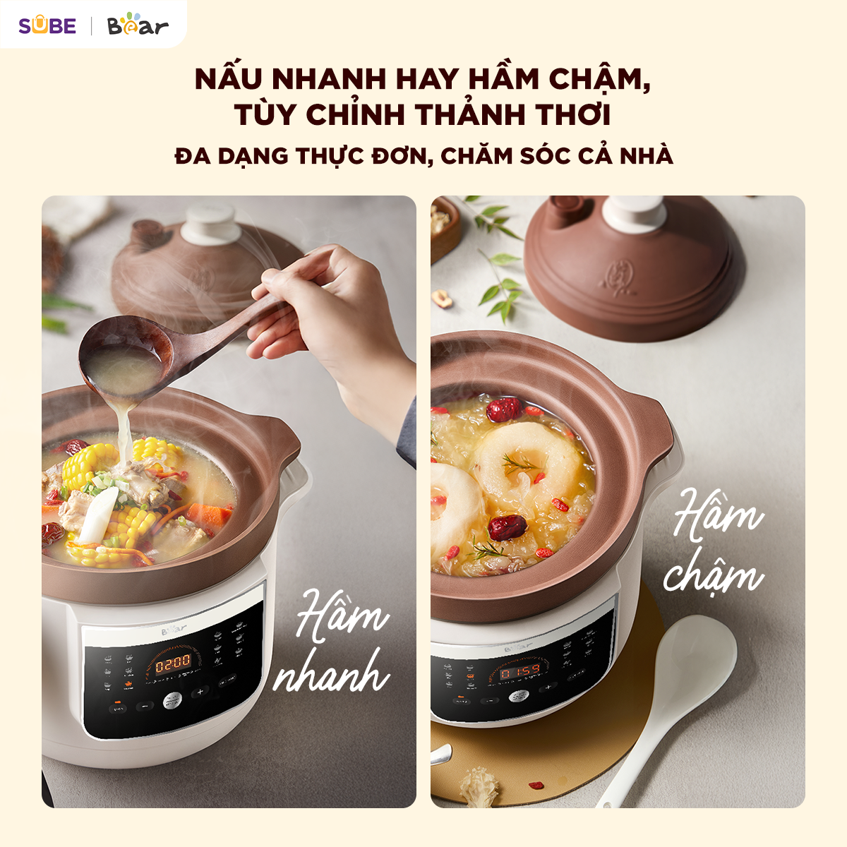 Trong những năm gần đây, xu hướng nấu chậm và dưỡng sinh ngày càng được các gia đình Việt yêu thích, đặc biệt khi người dùng quan tâm hơn đến sự cân bằng giữa hương vị tự nhiên và dinh dưỡng. Nồi nấu chậm tử sa 3L Bear ESP-305LP ra đời như một lựa chọn thông minh cho căn bếp hiện đại: dung tích lớn, vận hành tự động, không canh lửa, chất liệu tử sa quý an toàn cho sức khỏe và khả năng chế biến đa dạng từ cháo, canh, súp, gà tần đến chè, ngũ cốc.
