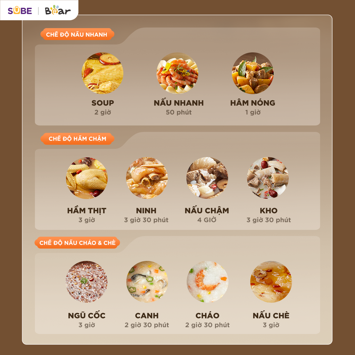 | Hầm thịt | 3:00 | 1:00 | 5:50 | 10 phút |