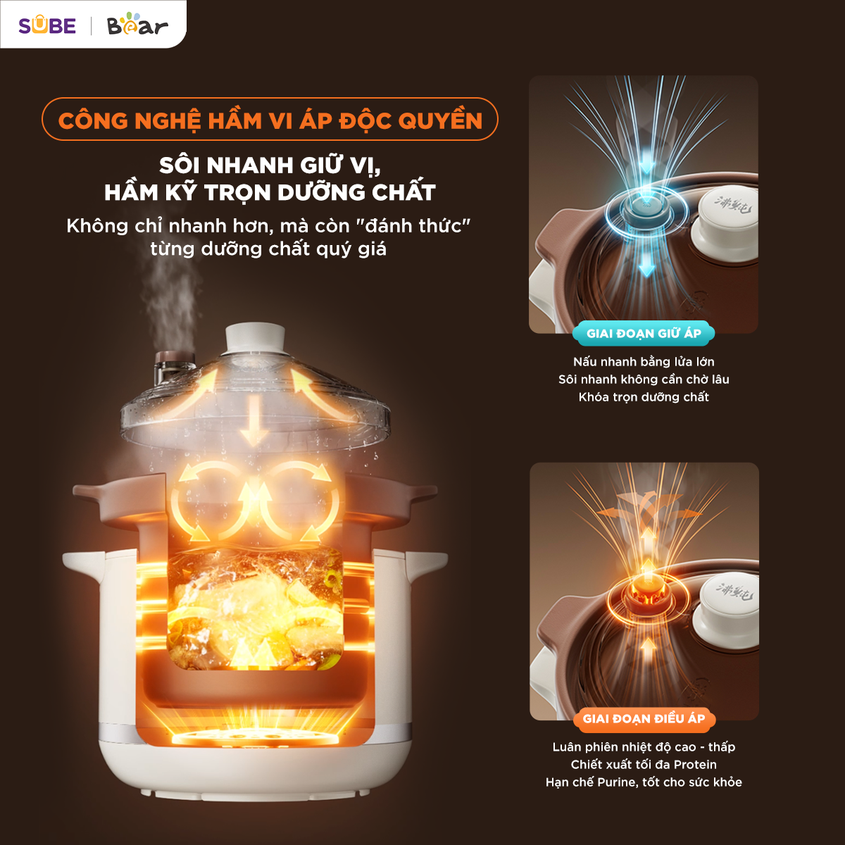 → Giữ trọn dinh dưỡng: Thực phẩm được nấu chín từ từ, không sốc nhiệt, hạn chế phá vỡ vitamin và cáu trúc protein.